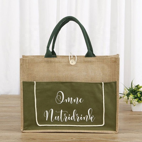 Sıcak satış özel Logo jüt çanta çevre dostu el çantaları bayanlar lüks yeni tasarım bakkal kullanımlık Tote alışveriş jüt çanta s